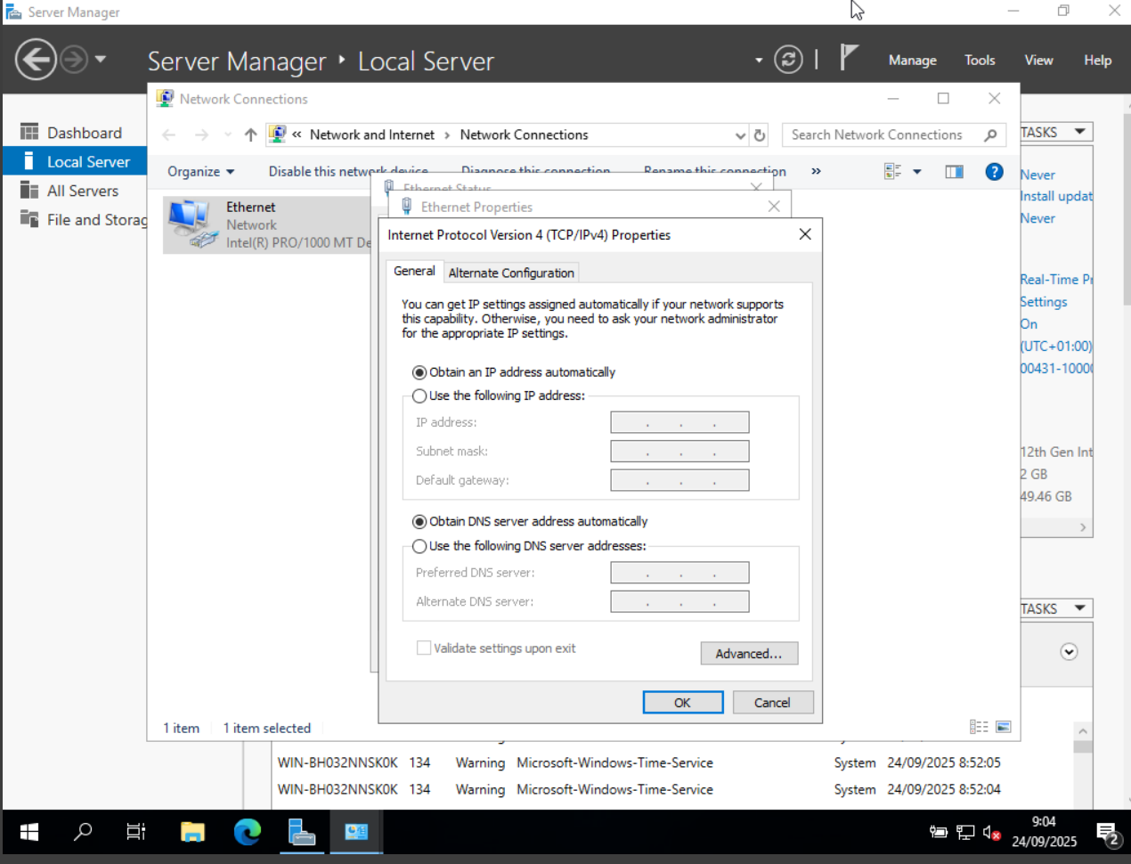 M’he asegurat que la maquina estigues en xarxa dinamica  per a que obtengi IP per el servidor DHCP