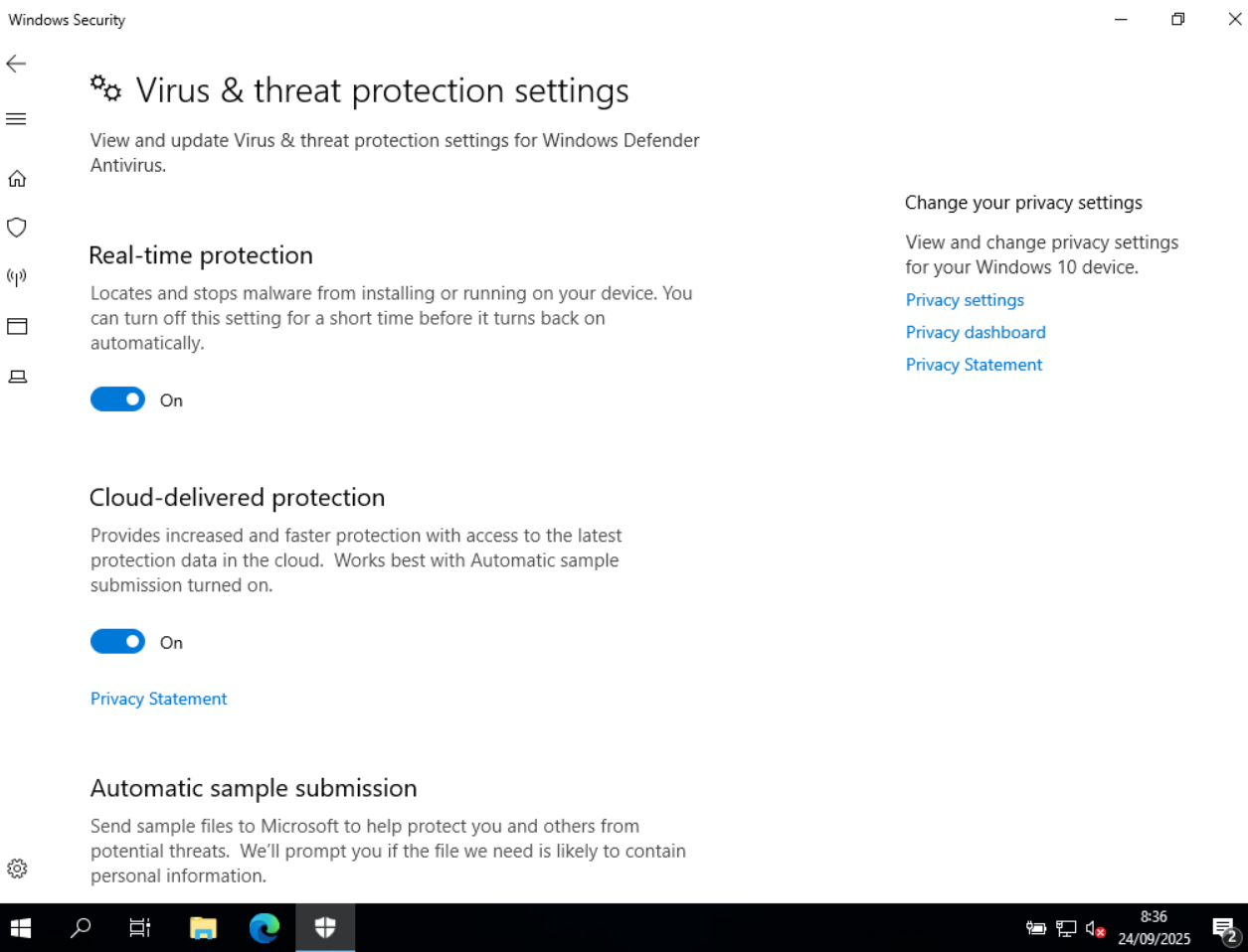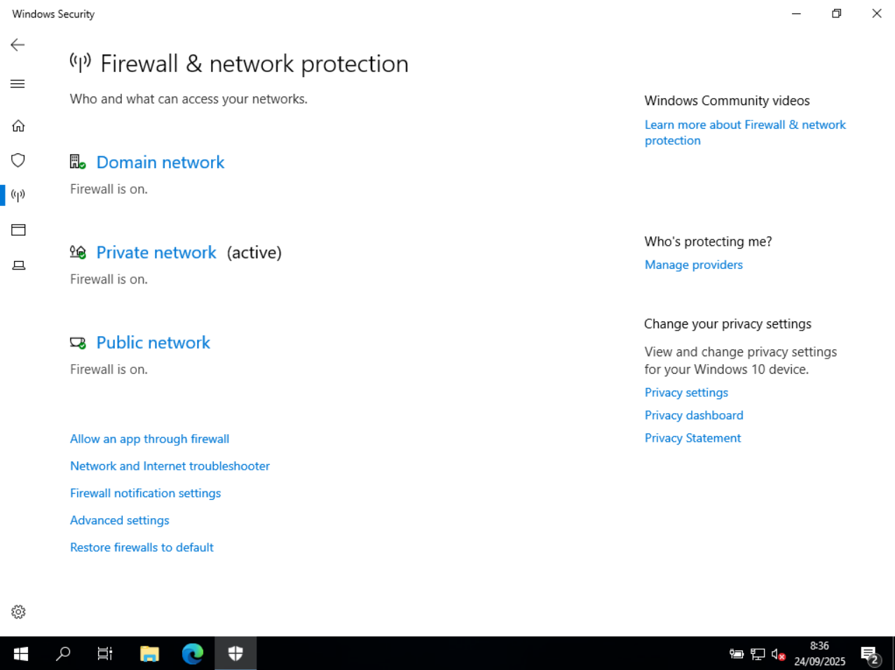 Com no en han demanat un antivirus o firewall específic m’he assegurat que el incorporat a Windows estigui ences i funcionant correctament