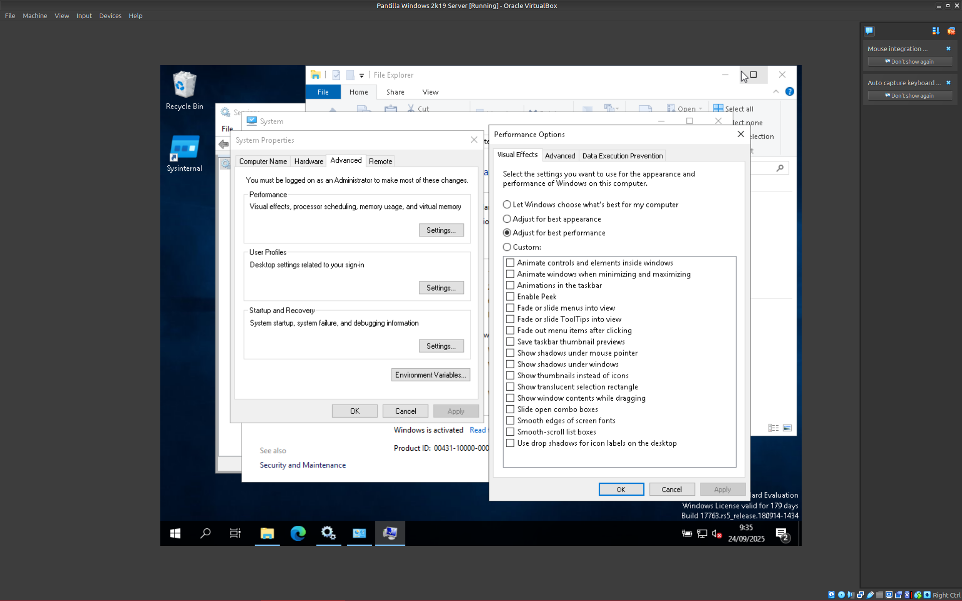 Windows té moltes animacions i efectes visuals que a servidors no es necessiten.